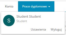 W przypadku, gdy Studenta zaakceptował Promotor może on widzieć prace przez niego realizowaną w opcji menu Prace dyplomowe, a następnie w opcji Moje prace dyplomowe. W przypadku, gdy Student realizuje jedną pracę dyplomową zostanie bezpośrednio do niej przeniesiony, natomiast w przypadku realizowania kilku prac dyplomowych zostanie mu wyświetlona lista prac dyplomowych. W momencie realizacji pracy dyplomowej Student będzie widział w jej szczegółach dodatkowe informacje o realizacji pracy dyplomowej: